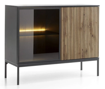 Tv-lowboard TORRO eiche cremona 200 cm schwarz 3-türig abgerundet push-to-open