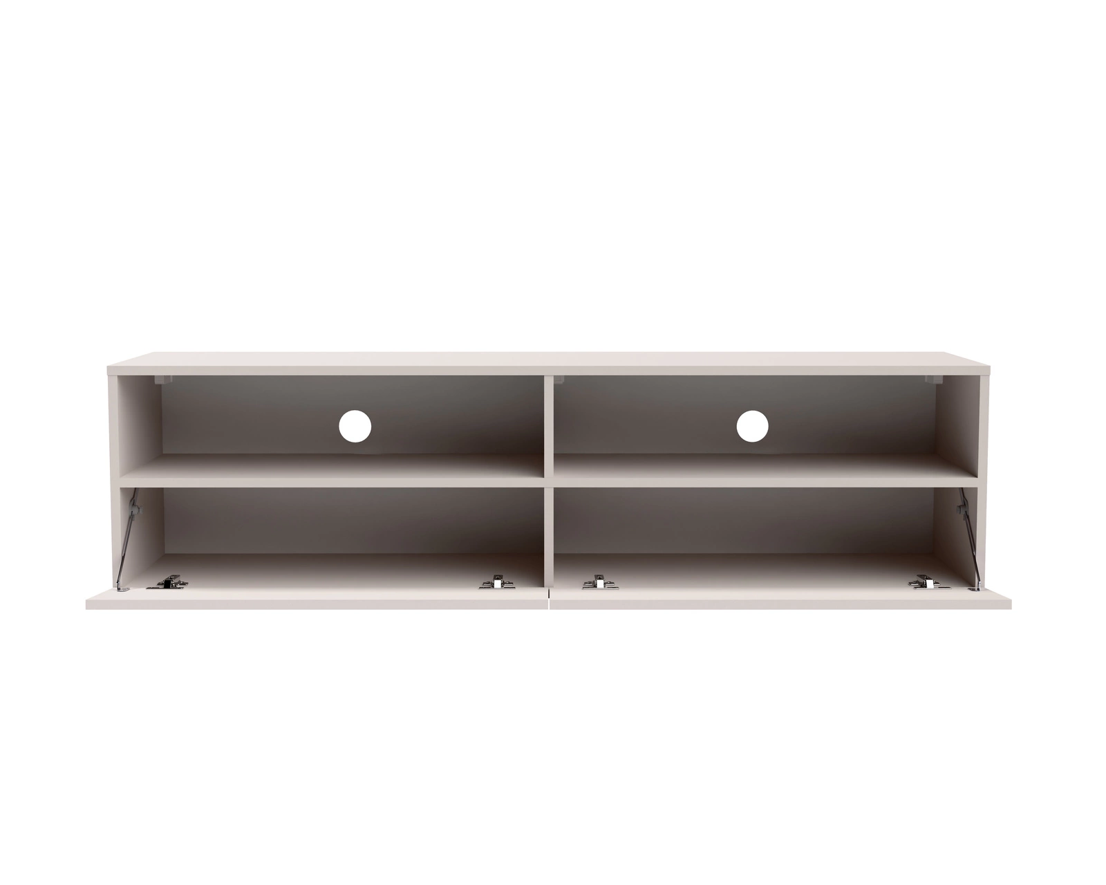 - Tebris 150 in Kaschmir ist ein stilvoller TV-Schrank mit 2 Türen und 2 Kabelöffnungen. Zartes Beige, praktische Form und Push-to-Open-System – Eleganz im Dienste der Funktionalität.
