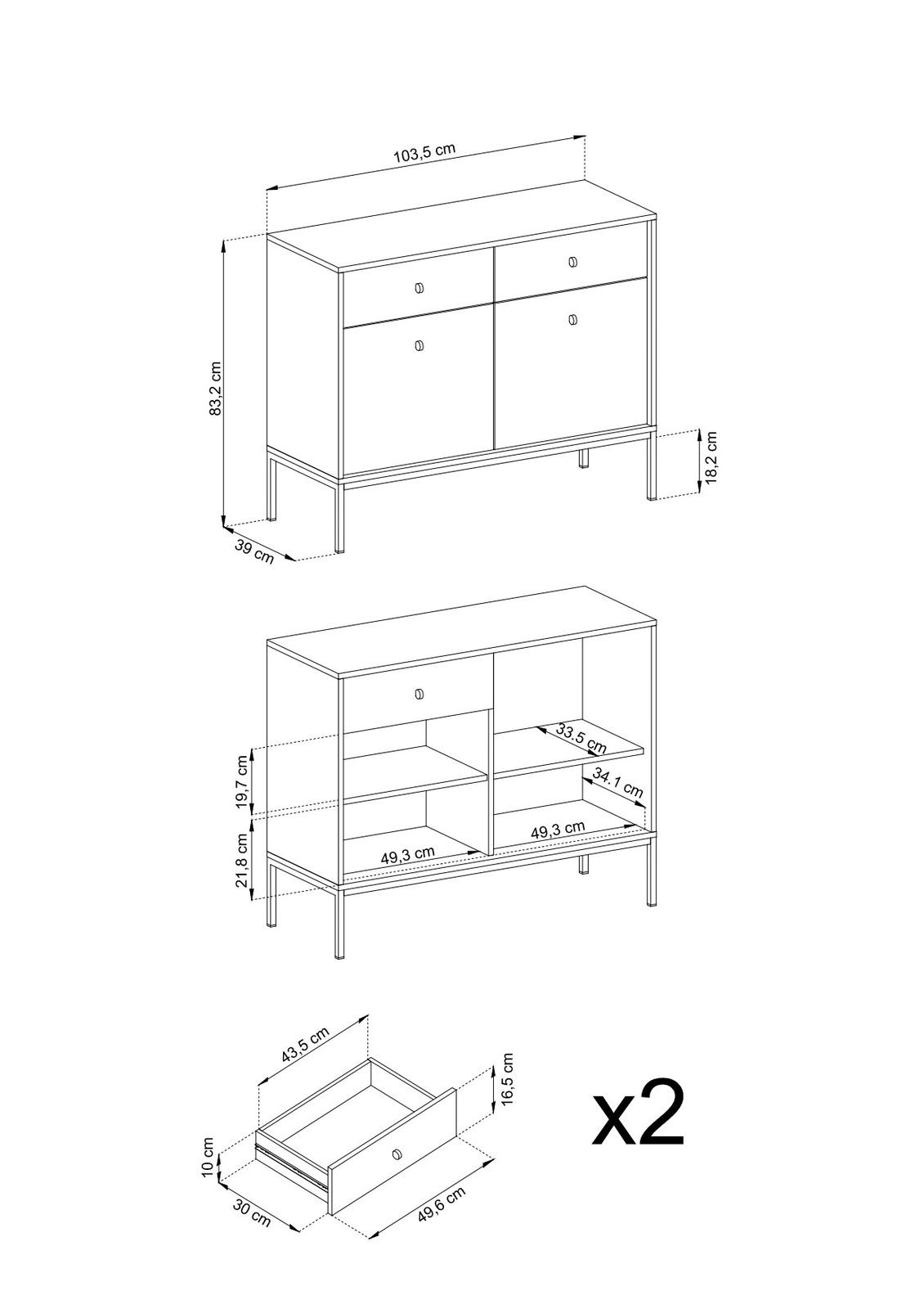 Die Kommode Bari KSZ104 verfügt über zwei Türen, die sich zu einem geräumigen Stauraum öffnen. Zusätzlich ergänzen zwei geräumige Schubladen das Ganze und sorgen für schnellen Zugriff auf die darin aufbewahrten Gegenstände. Das einzigartige Design und die Funktionalität der Kommode machen sie zu einem Möbelstück, das nicht nur den Alltag erleichtert, sondern auch ein schönes Dekorationselement darstellt.