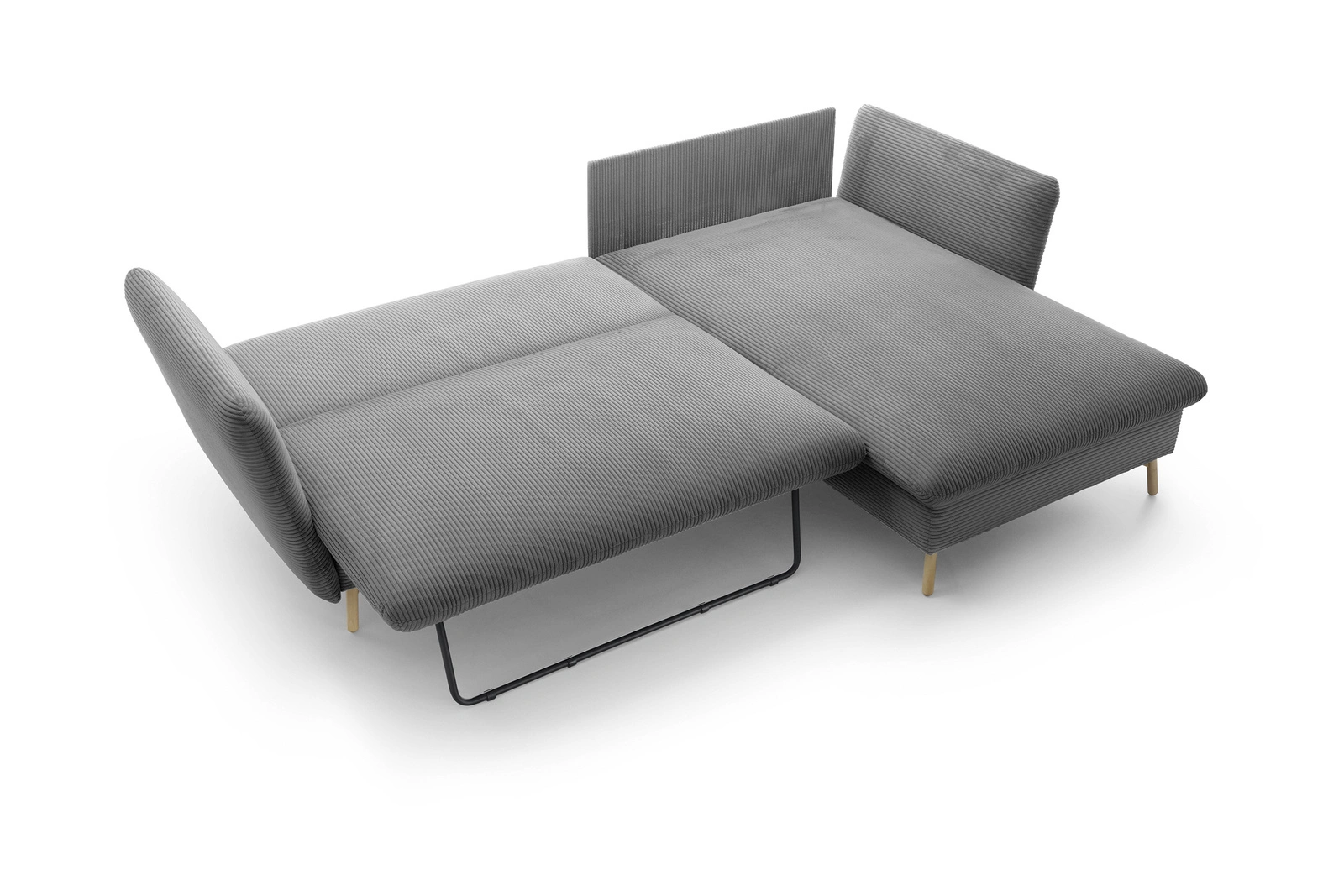 Ecksofa MORRE rechts dicker Cord Poso 60 stahlgrau Schlaffunktion Skandi-Stil