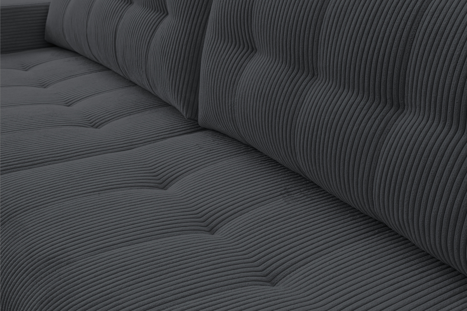 Dank der Schlaffunktion lässt es sich ganz einfach in einen bequemen Schlafplatz verwandeln, und der Bettkasten bietet zusätzlichen Stauraum. Durch die wählbare Eckseite lässt sich das Möbelstück an jede Raumaufteilung anpassen. Palermo eignet sich sowohl für das Wohnzimmer als auch für das Wohnzimmer und schafft einen gemütlichen Raum zum Entspannen und für Treffen mit Ihren Lieben.