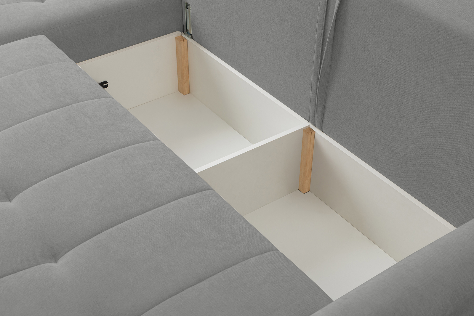 - Freistehendes Ecksofa – Rückseite mit Stoff bezogen