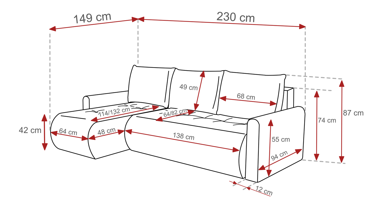- ein umwandelbares Ecksofa mit Schlaffunktion,