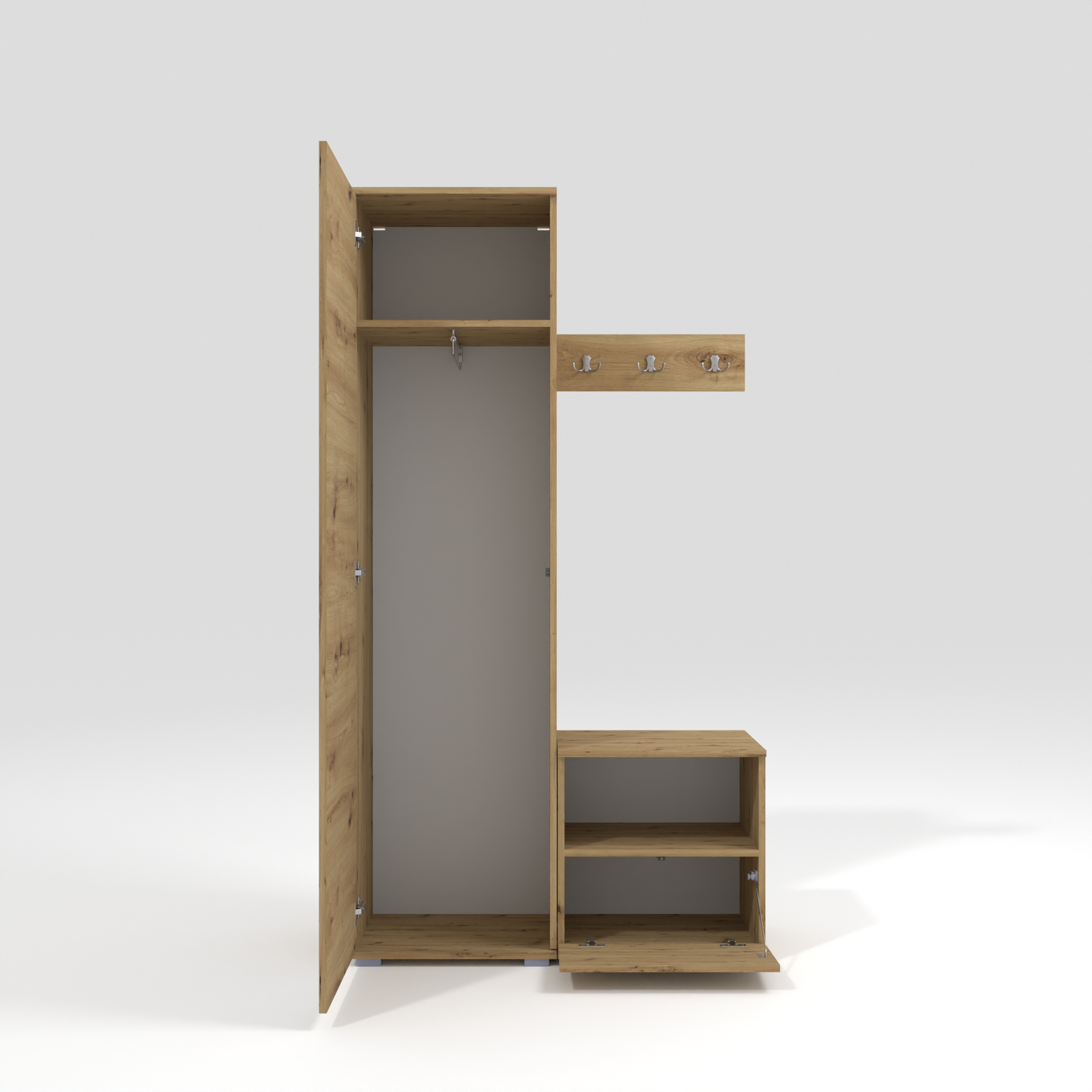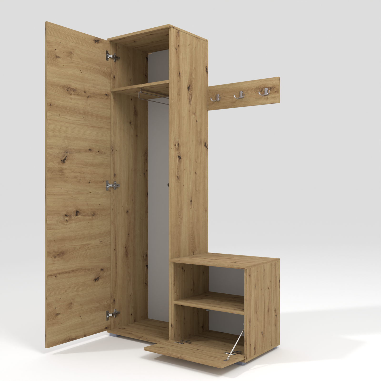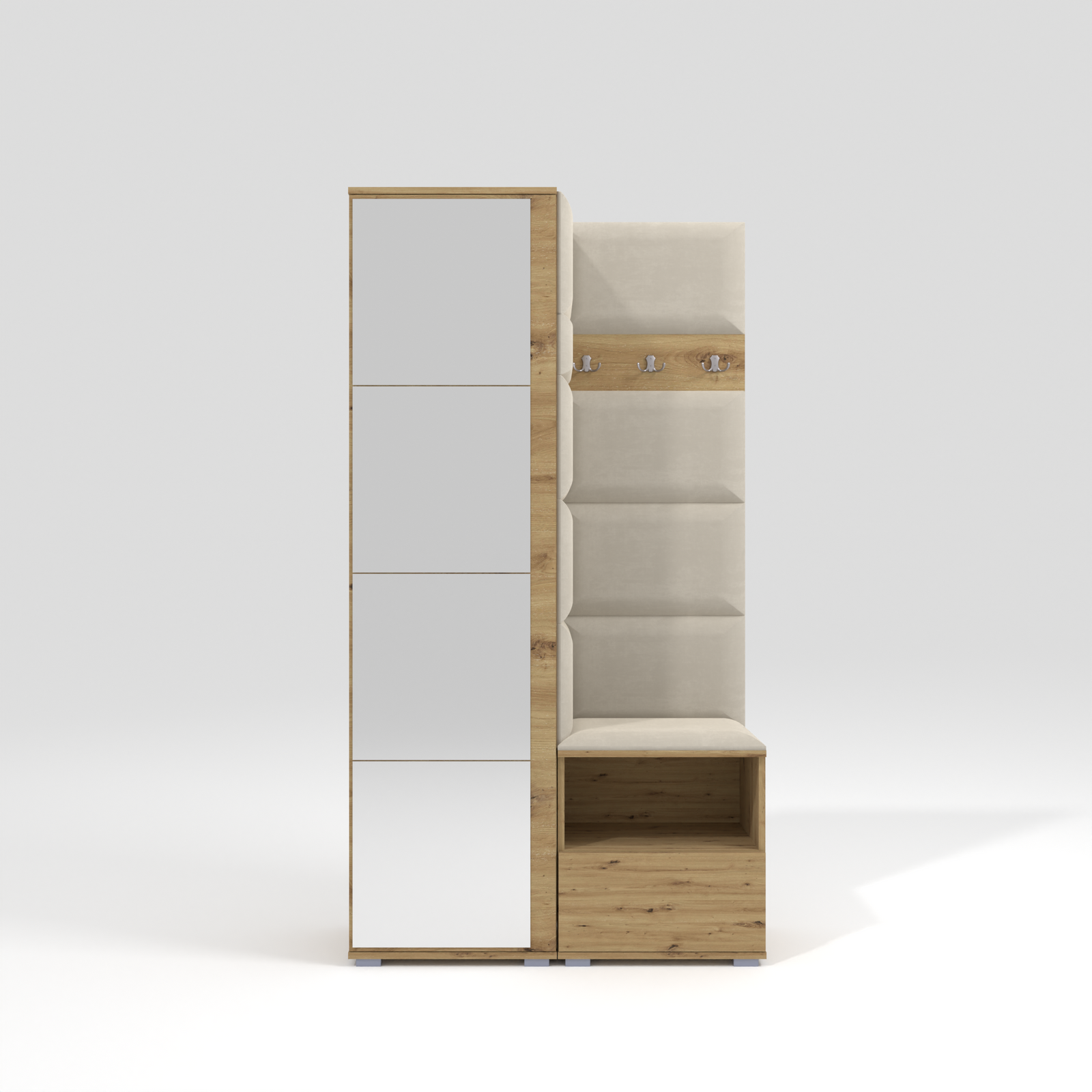 Garderoben-Set Nela I mit Spiegel – Farbe Eiche Artisan + Stoff Trinity 01
