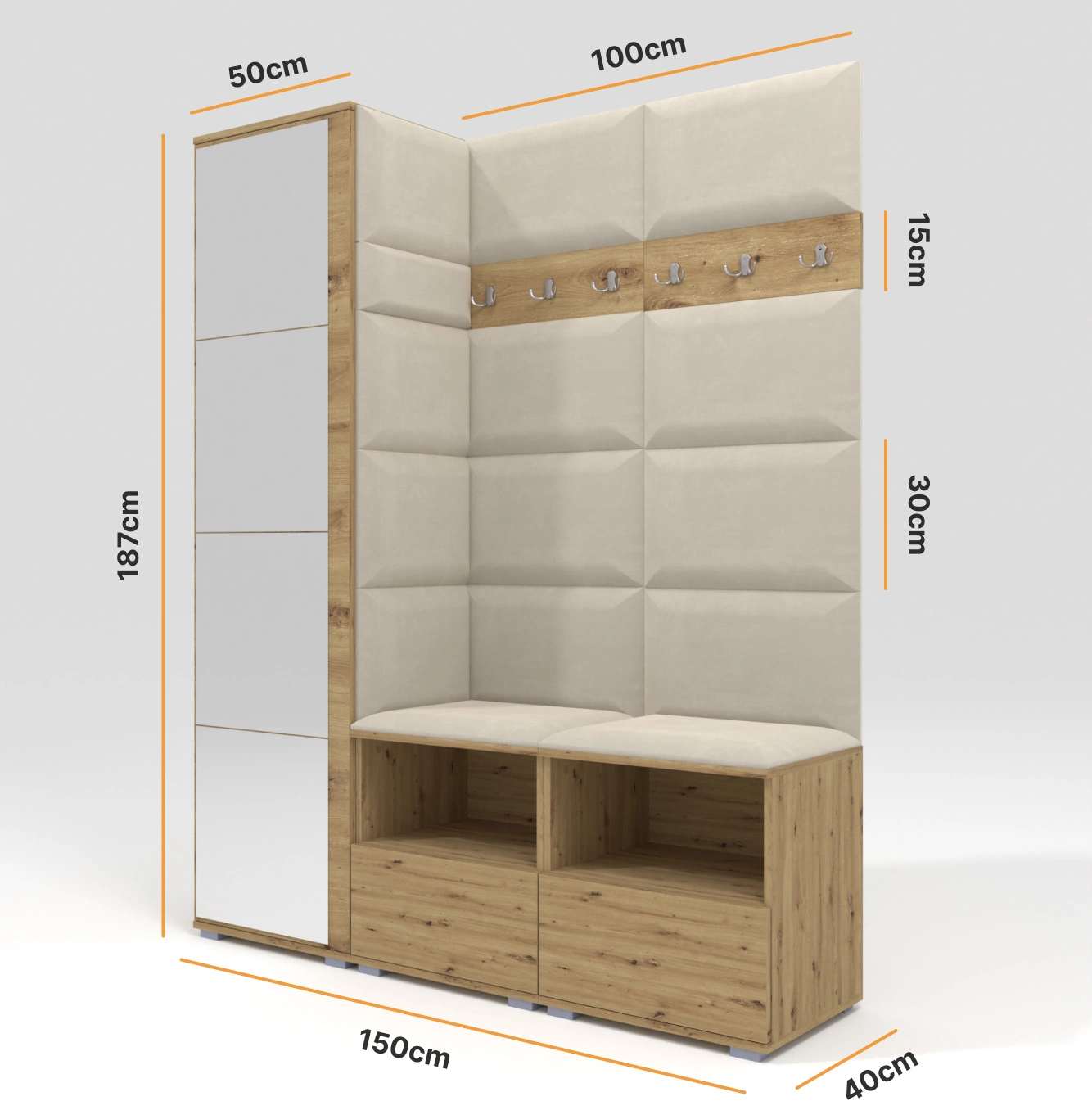 Gepolsterte Garderoben-Set Nela II mit Spiegel – Die Lösung für Sie