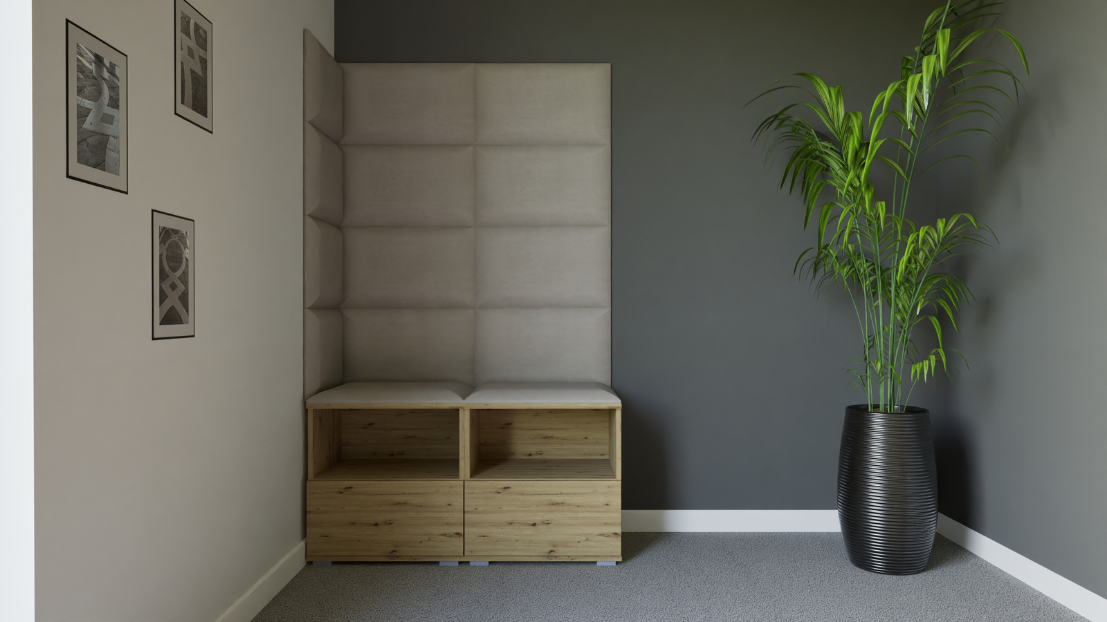 - Die gepolsterten Paneele bestehen aus 8 mm MDF-Platten, 3 cm T-21-Schaumstoff und Trinity-Veloursstoff