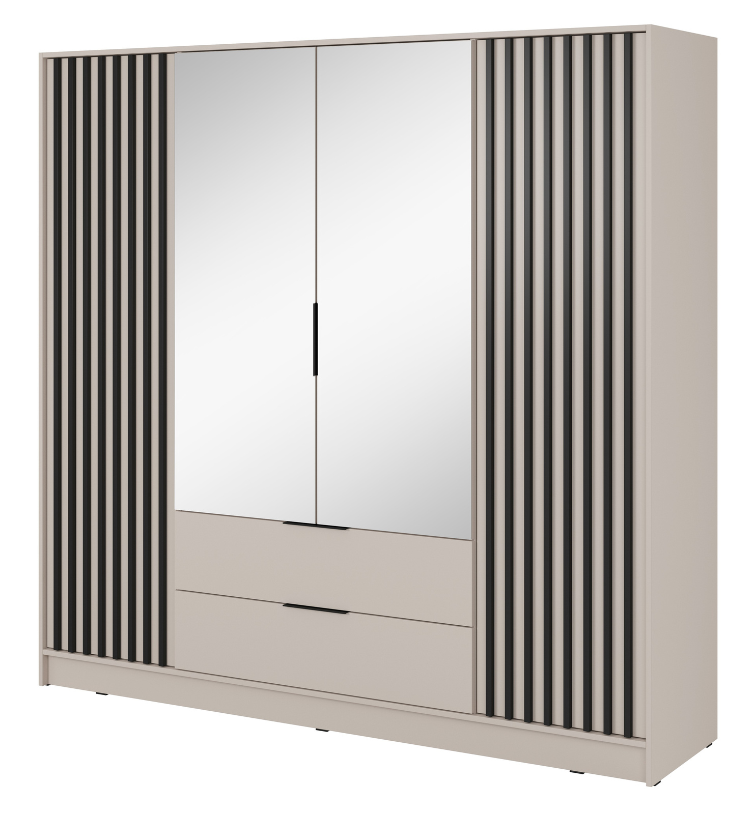 Garderobenschrank Stilo in Kaschmirfarbe, vier Türen, mit Spiegel und Lamellen an der Vorderseite