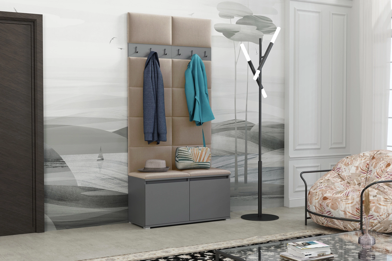Gepolsterter Garderoben-Set Noris I, eine kompakte und moderne Lösung für jeden