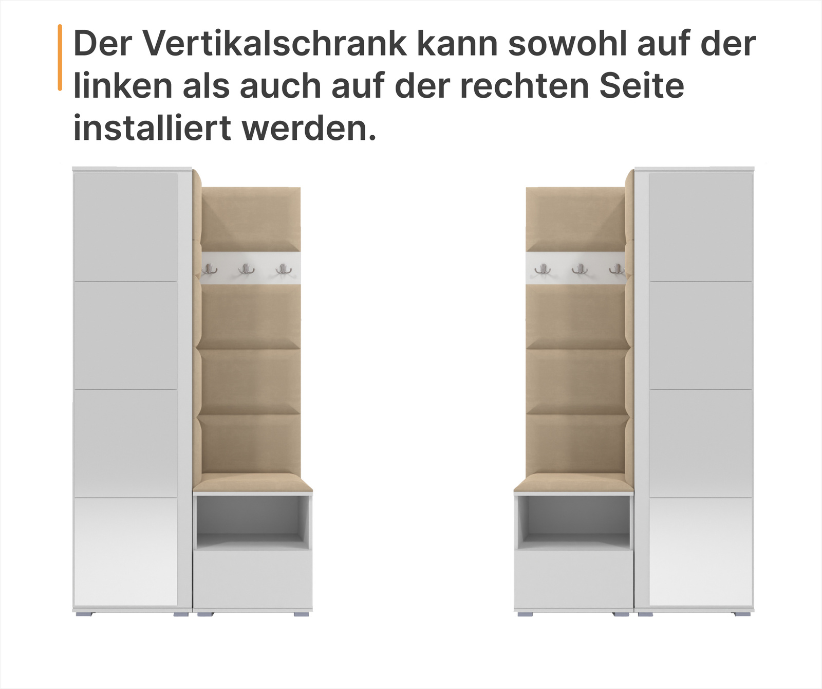 Möglichkeit, den Schrank rechts oder links aufzustellen