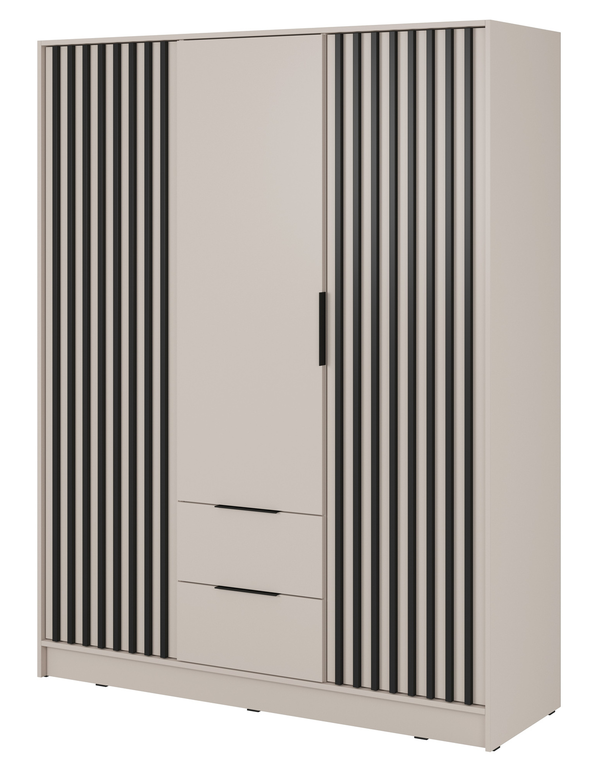Kleiderschrank Stilo in Kaschmirfarbe, dreitürig, mit Schubladen und Lamellen an der Vorderseite