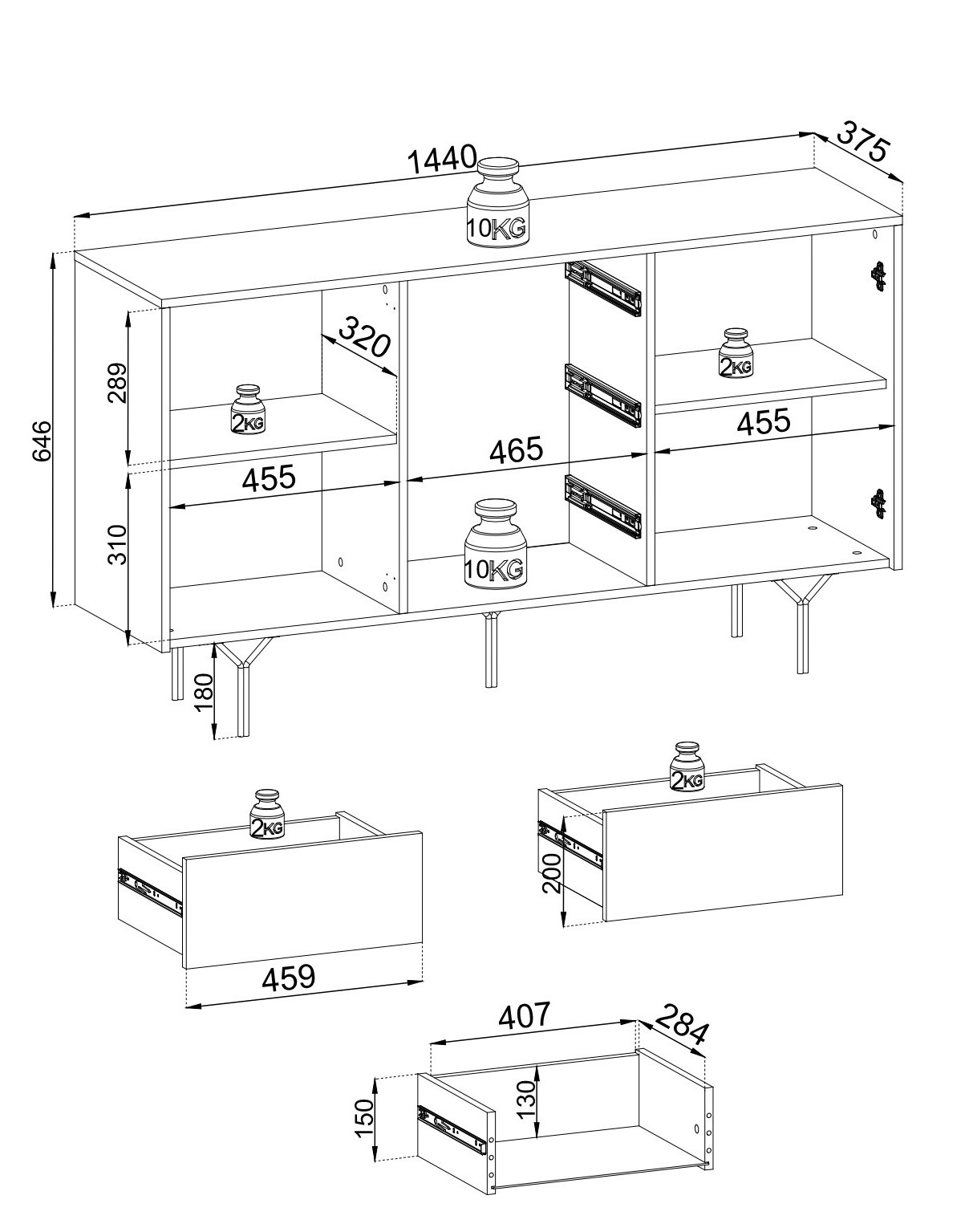 Kommode East KSZ144 2D mit drei Schubladen und zwei Türen