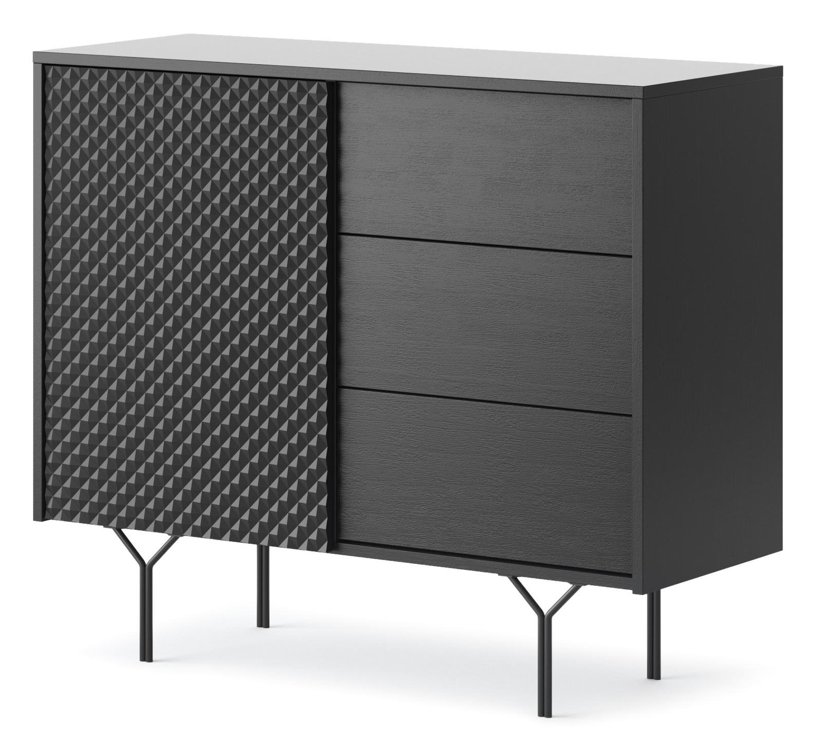 - Die Kommode East mit einer kompakten Breite von 97 cm ist ein echtes Juwel des modernen Designs, das Ihrem Interieur Eleganz und Funktionalität verleiht. In graphit schwarz strahlt diese Kommode Modernität und Stil aus.