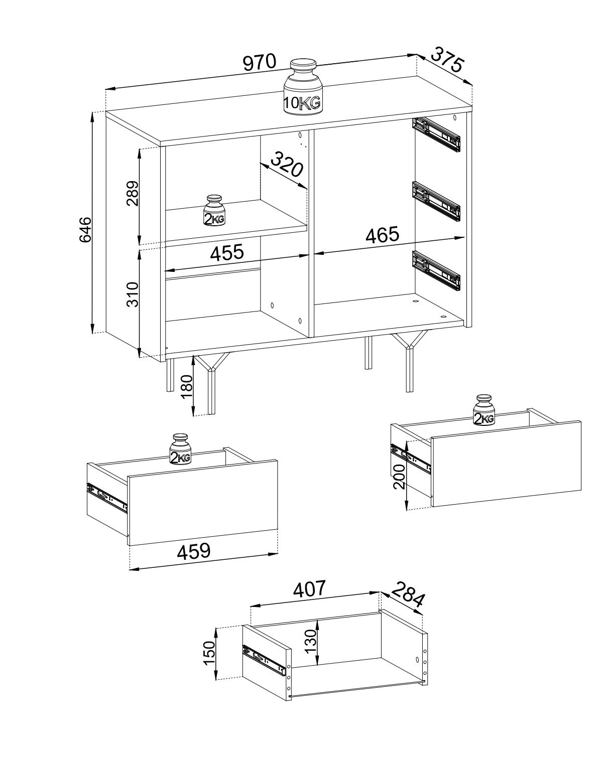 - 3x Schublade (Kugelführungen, Vollauszug)