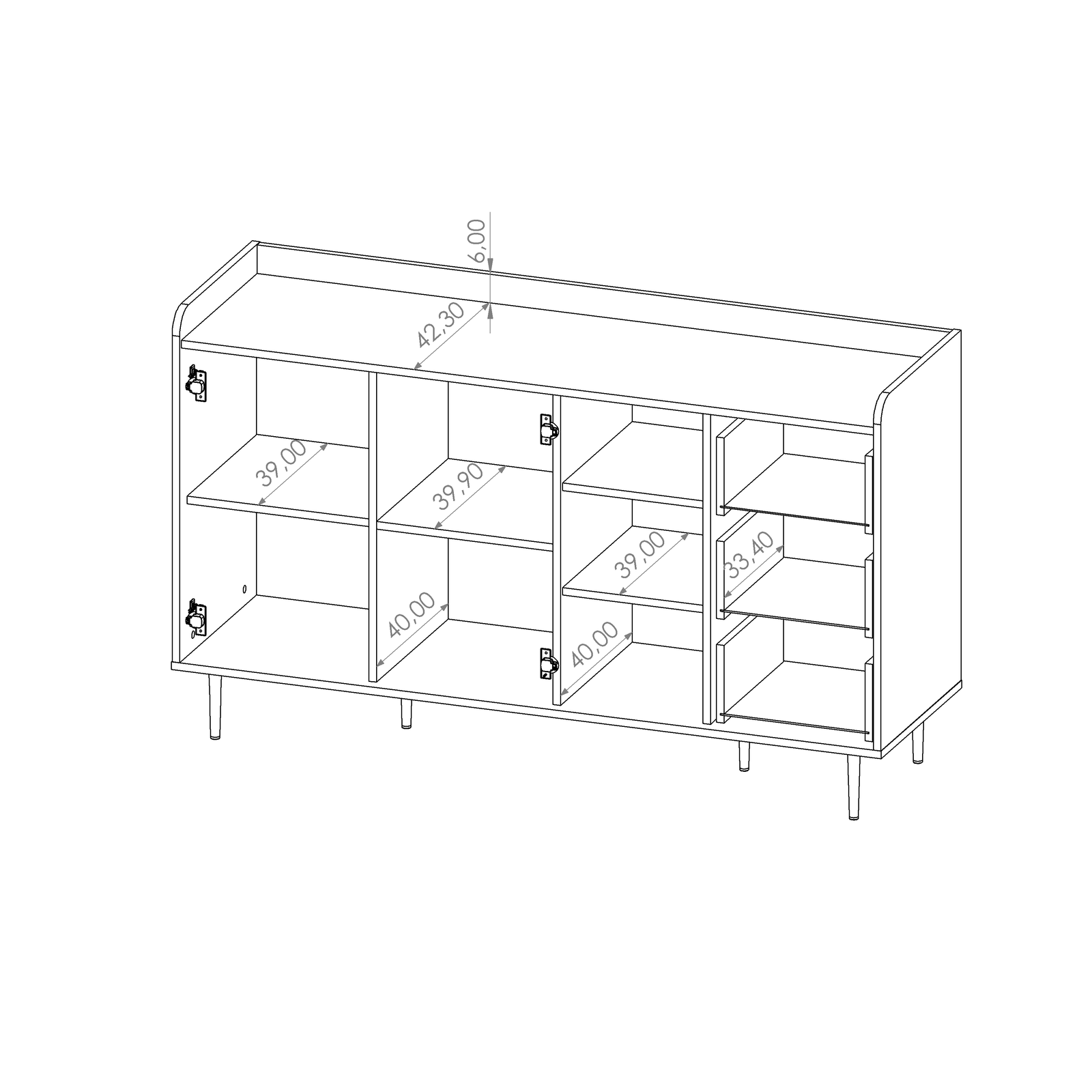 - 3 Schubladen – unten montierte Führungen mit Dämpfung,
