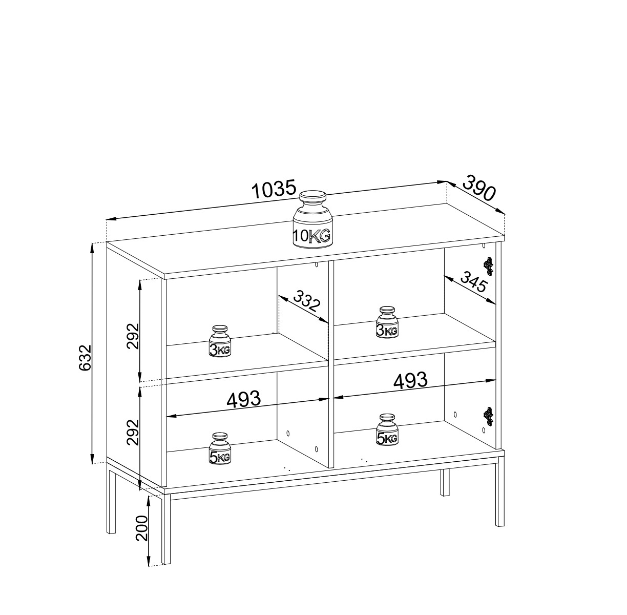 Die Kommode in Kaschmirfarbe verbindet subtile Eleganz mit Loft-Chic: Die matten, warmen Fronten ruhen auf schlanken, schwarzen Metallbeinen, und der verglaste Teil der Türen mit LED-Beleuchtung ermöglicht es, Lieblingsdekorationen oder Glasobjekte zu präsentieren, ohne auf Ordnung zu verzichten. Diese Komposition lässt das Möbelstück leicht wirken, bietet gleichzeitig viel Stauraum und wird zu einem stilvollen Akzent in einem modernen Wohnzimmer.
