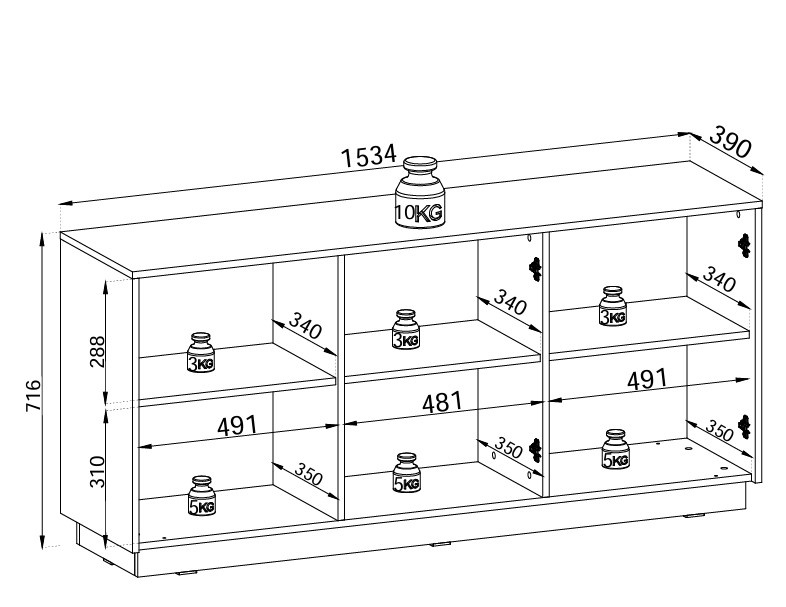 - Konstruktion aus 16 mm und 18 mm laminierter Platte