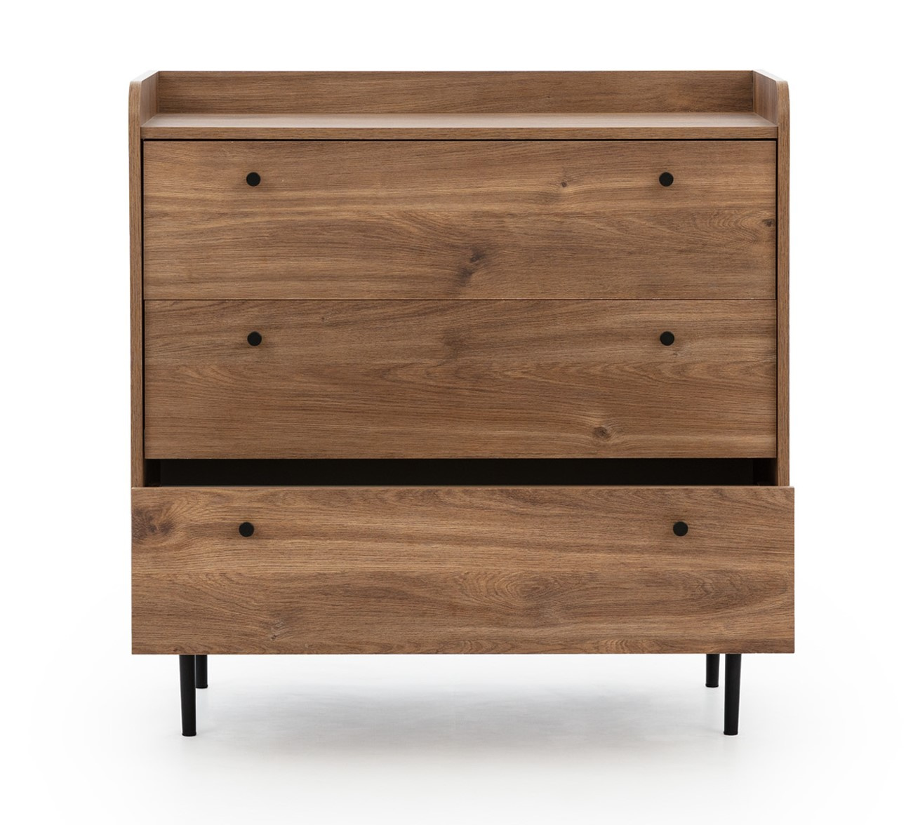 - Die 90 cm breite Kommode Nero mit drei geräumigen Schubladen verfügt über: - Metallbeine und -griffe, - hohe Verarbeitungsqualität und 24 Monate Garantie, - leisen Schließmechanismus, - schönes Loft-Design im klassischen Stil