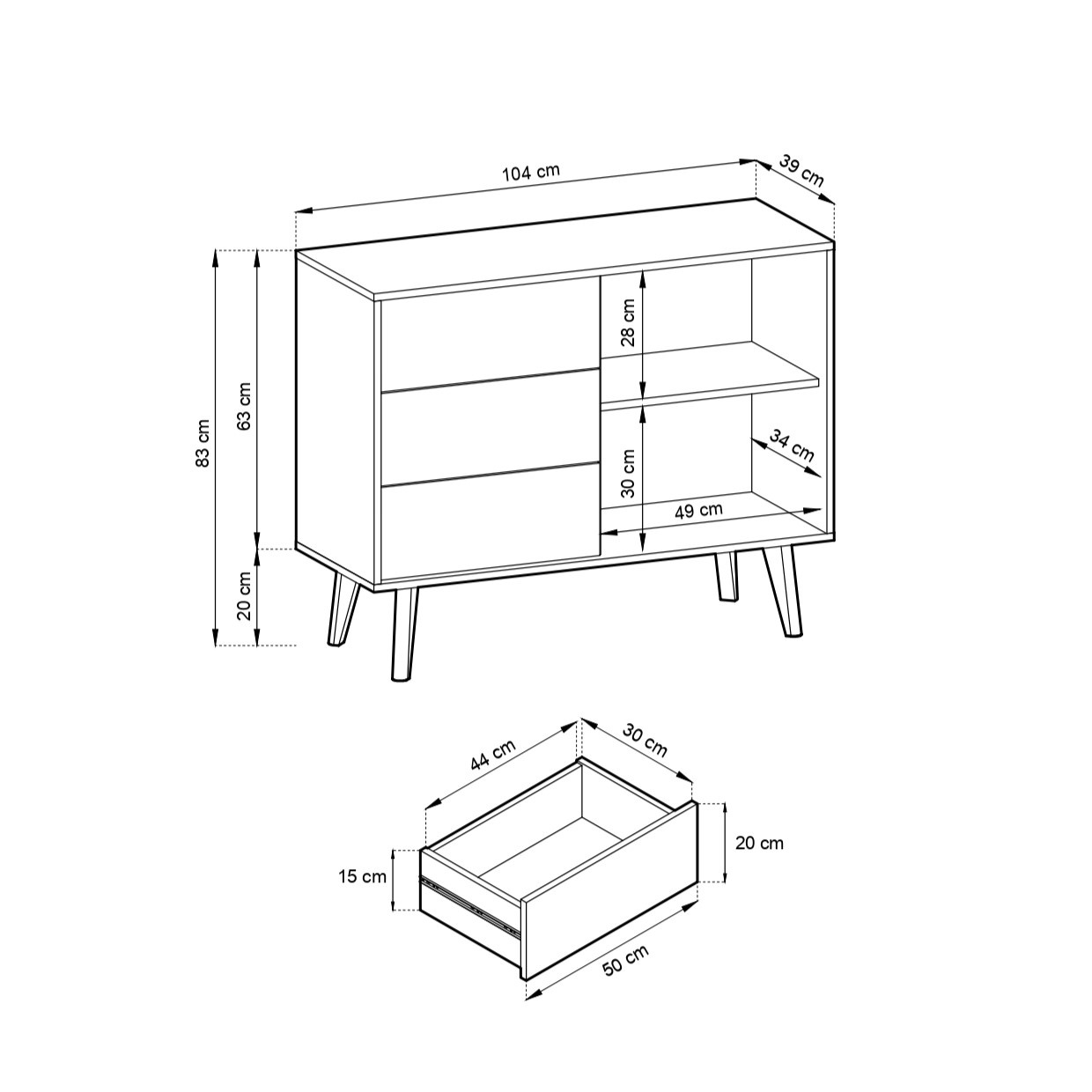 - Die kompakte Kommode Maestro mit einer Breite von 104 cm ist eine hervorragende Wahl für alle, die Eleganz und Funktionalität in ihr Interieur bringen möchten. Die Kommode ist mit drei geräumigen Schubladen ausgestattet, die sich ideal zur Aufbewahrung ve