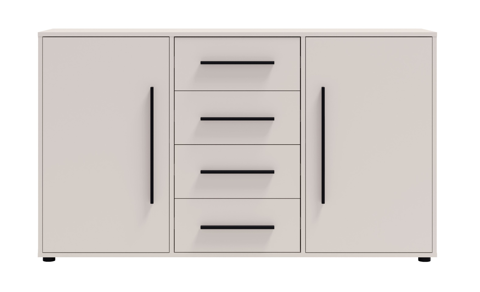 - Kommode in der Farbe Kaschmir Modena mit 4 Schubladen und 2 Schränken. Modern, geräumig und vielseitig – ideal für Wohnzimmer, Schlafzimmer und Flur.