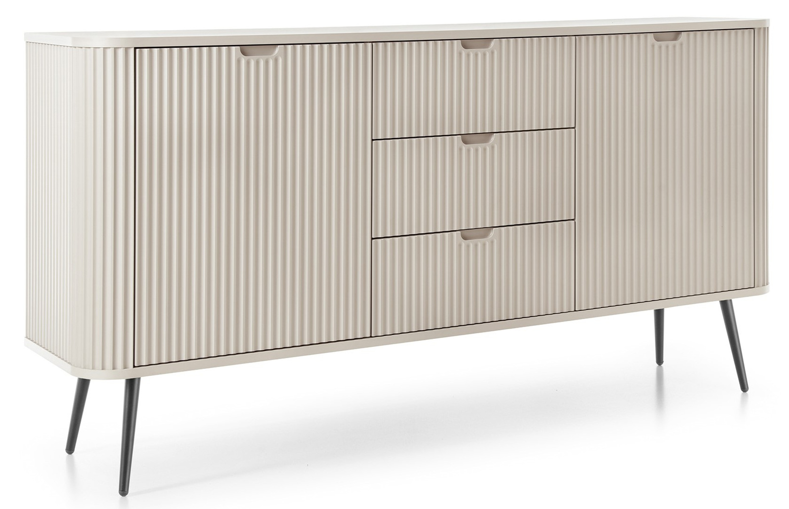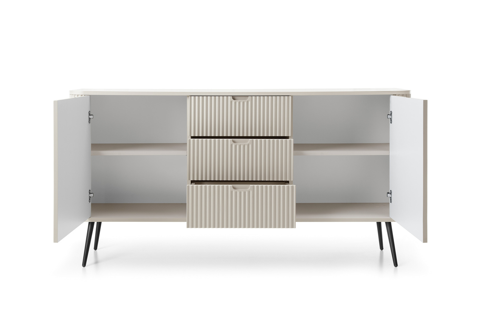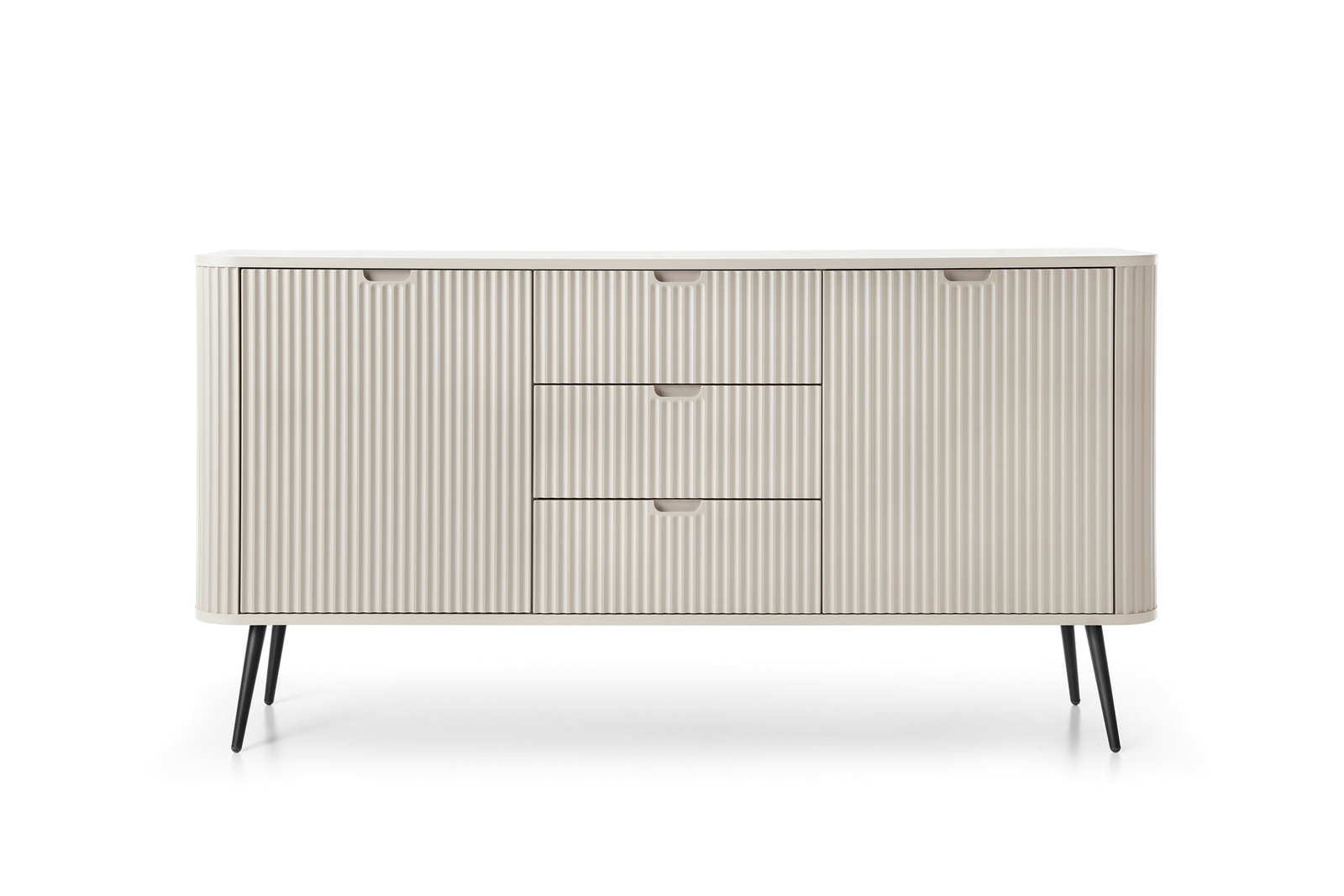 Kommode Porto 168 cm Cashmere Zweitürig mit drei Schubladen und schwarzen Beinen