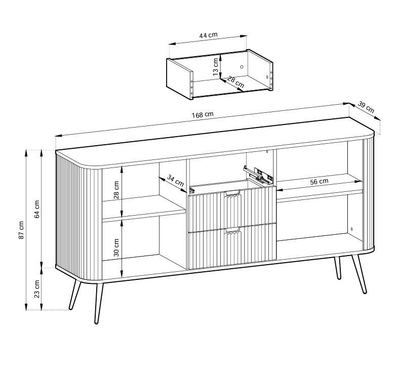 Die Kommode PORTO in Weiß ist ein modernes Möbelstück, das minimalistisches Design mit praktischen Lösungen verbindet. Ihre einzigartigen vertikalen Rillen an den Fronten verleihen ihr Eleganz und machen sie zu einem stilvollen Element in jedem Interieur – vom Wohnzimmer über das Schlafzimmer bis hin zum Flur.