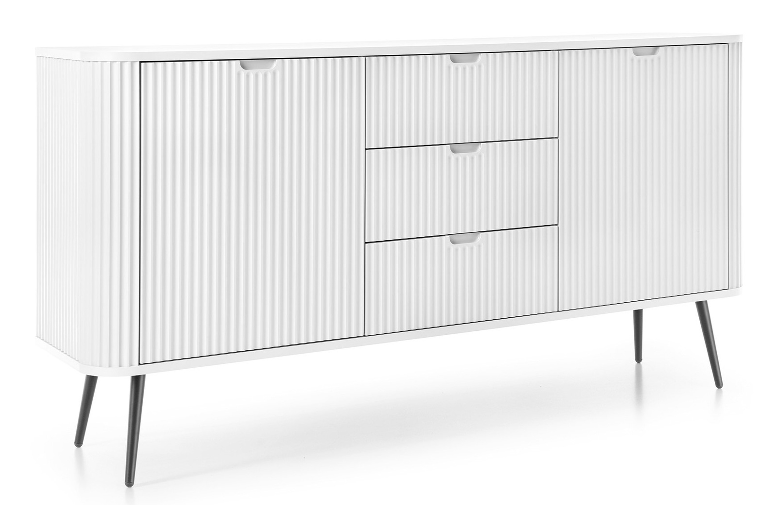 Kommode Porto 168 cm weiß, zweitürig mit drei Schubladen und schwarzen Beinen