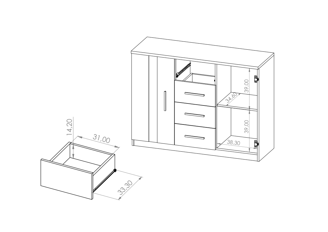 Kommode Tamiza K2D4SZ 120 cm Eiche Monastery