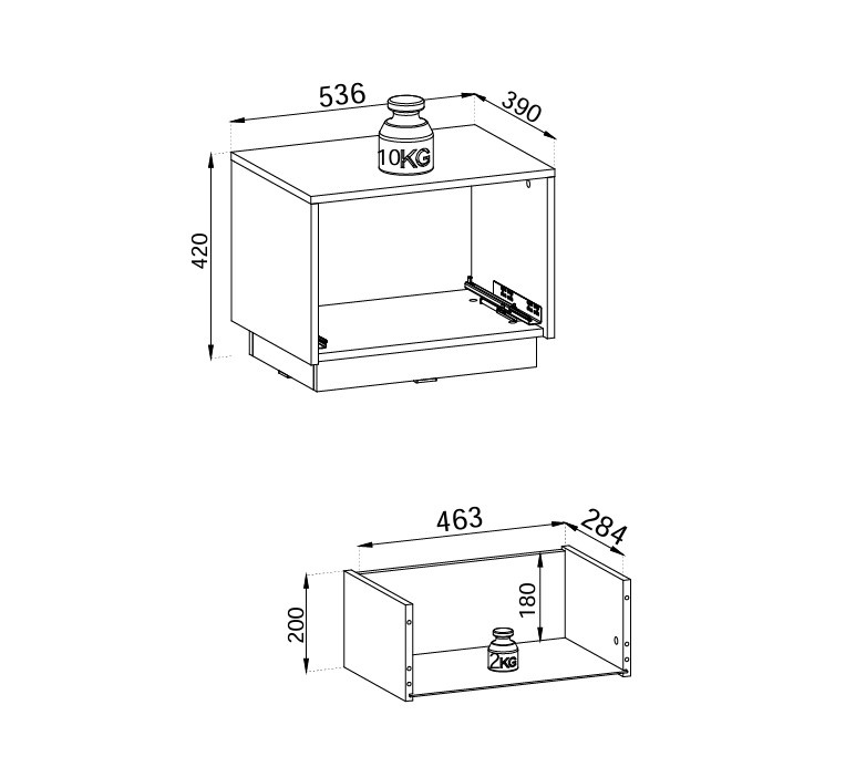 - Laminierte Platte 16 mm, ABS-Kante 0,5 mm