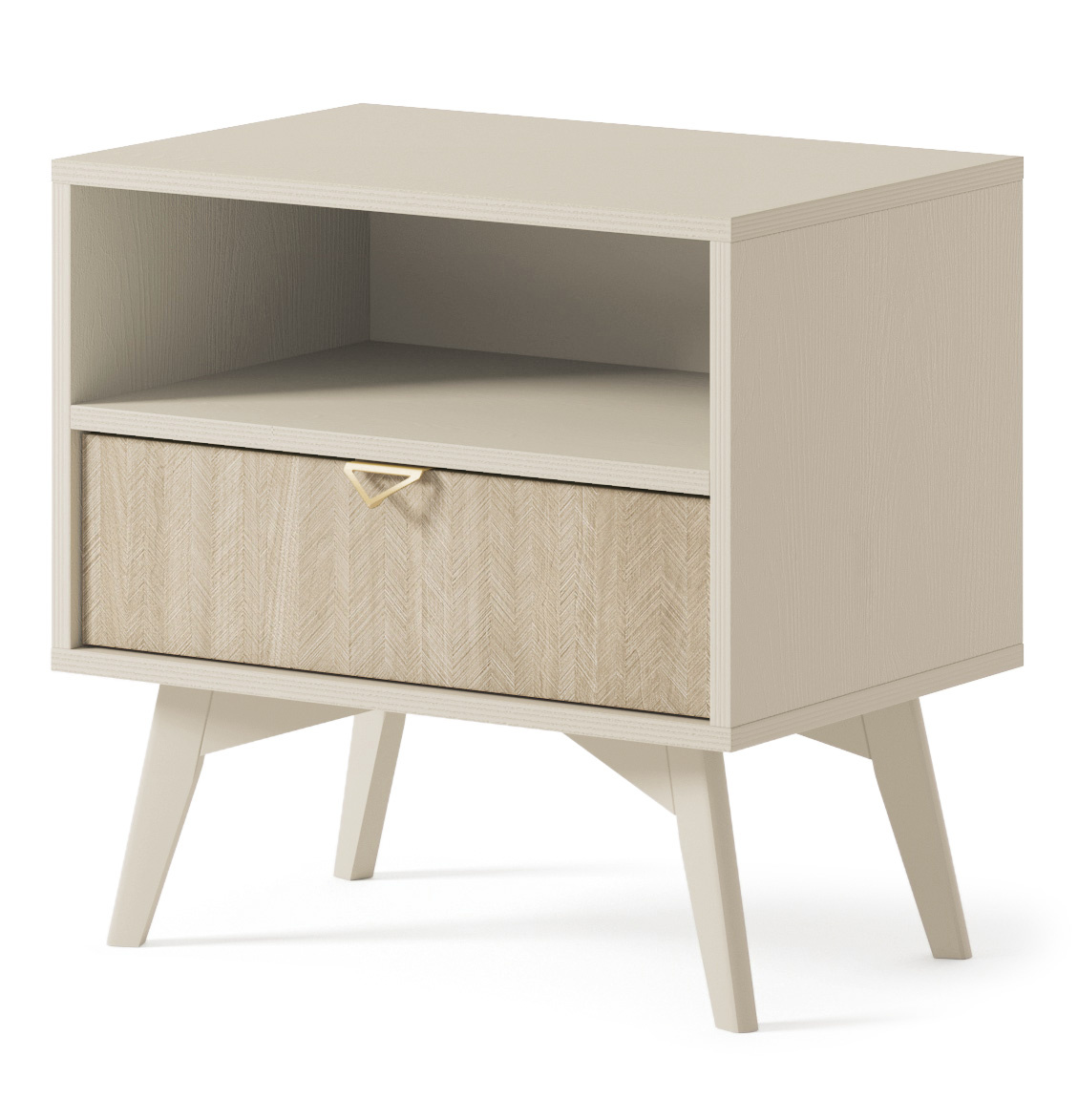 Nachttisch Silva in Sandbeige + Scandi-Fischgrätmuster
