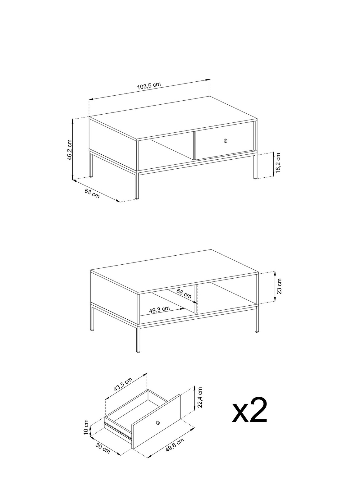 - Die rechteckige Couchtisch Bari in tiefem Marineblau ist nicht nur eine elegante Ergänzung für Ihr Interieur, sondern auch eine praktische Aufbewahrungslösung. Mit zwei geräumigen Schubladen sorgt diese Bank für Ordnung in Ihrem Wohnzimmer.
