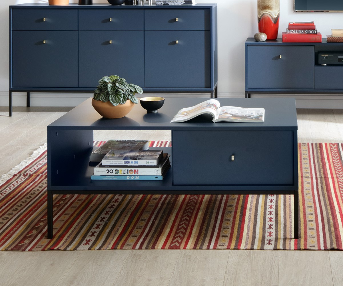 Rechteckige Couchtisch Bari mit zwei Schubladen in Dunkelblau