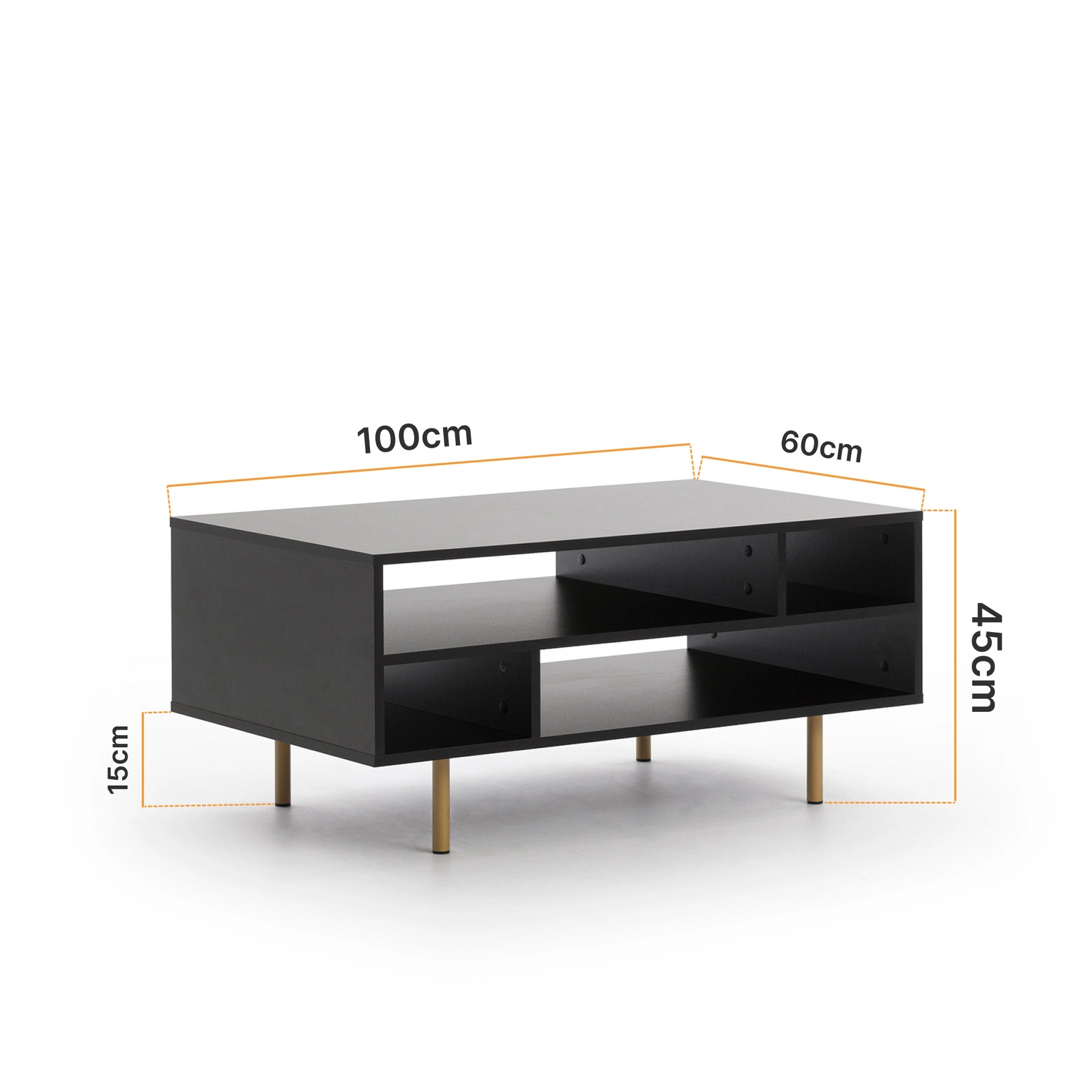 Rechteckiger Couchtisch Nubia mit Metallbeinen Schwarz
