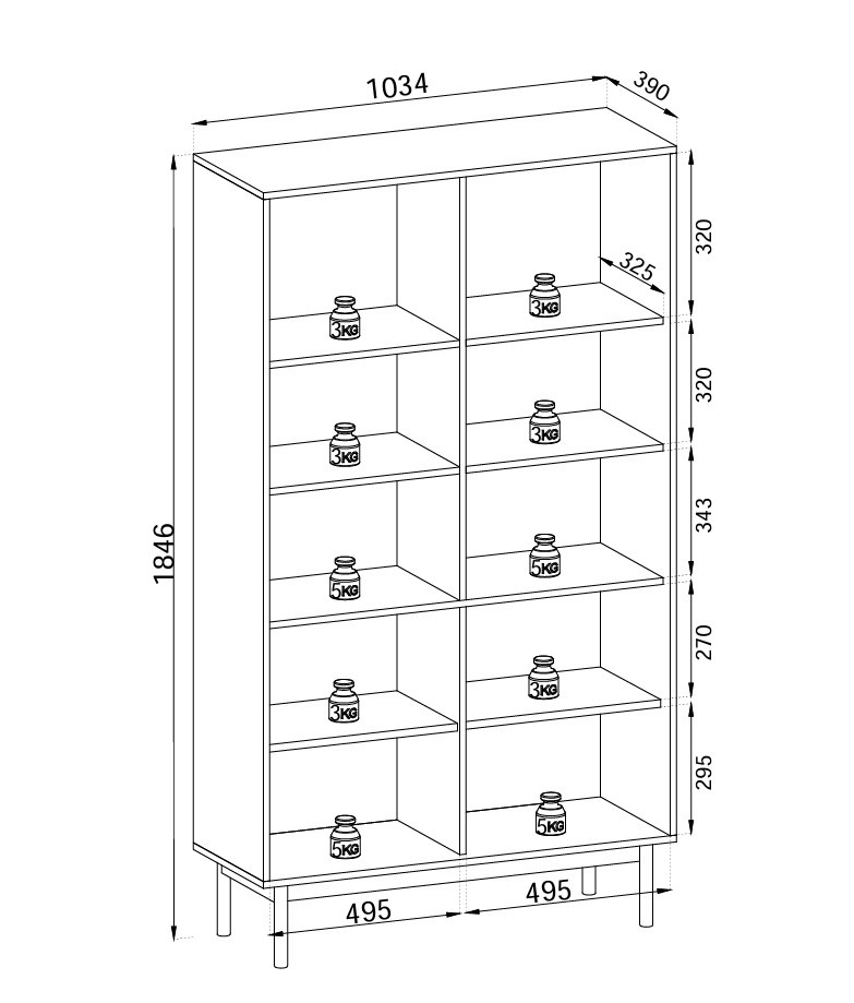 - Innenraum: 6 offene Einlegeböden + 4 abschließbare Fächer