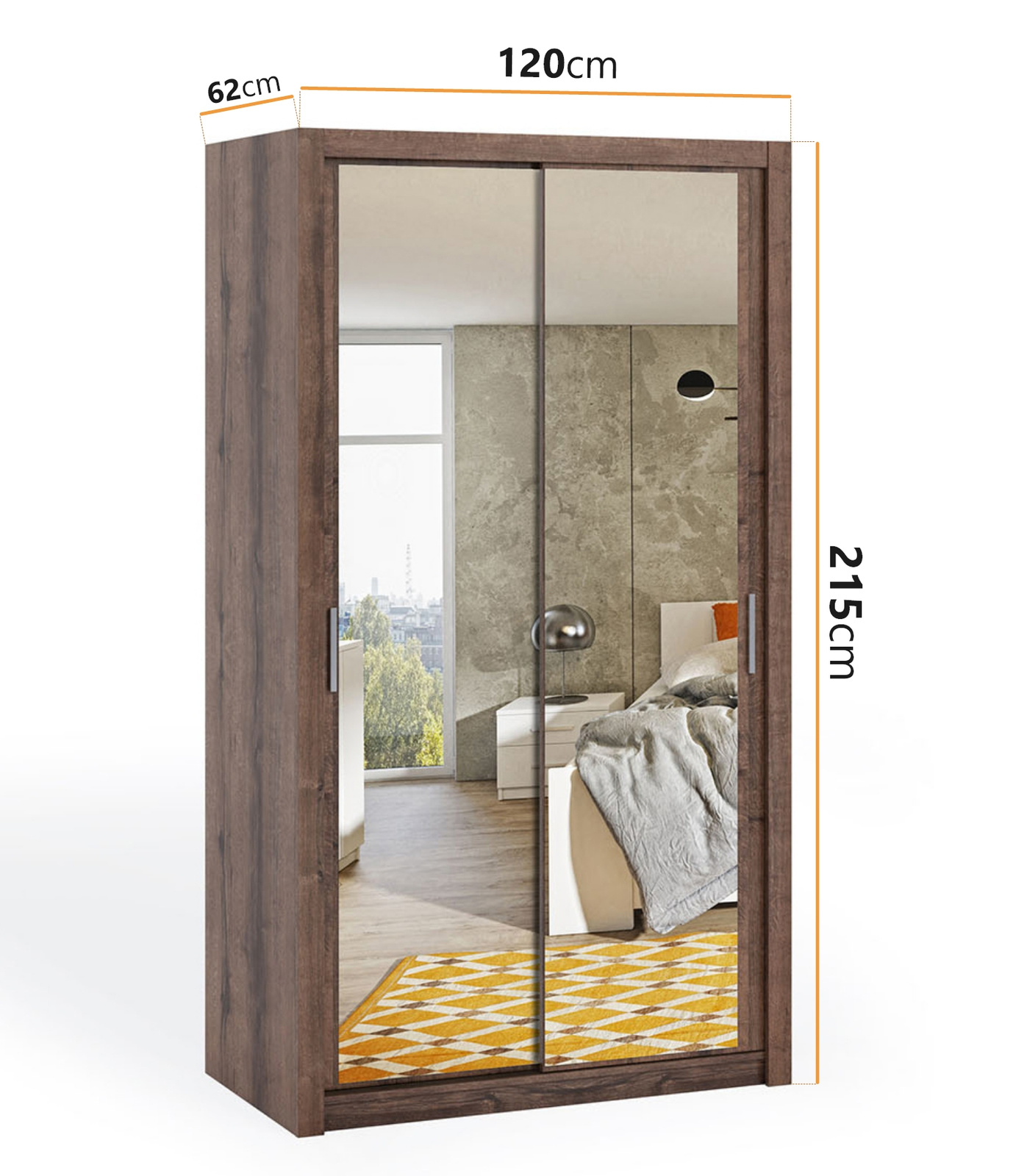 - Der Schiebeschrank Tamiza SZ120 eignet sich ideal für Ihr Schlafzimmer. Er bietet viel Platz für Kleidung und Accessoires. Im Inneren des Schranks befinden sich mehrere Einlegeböden und zwei Kleiderstangen.