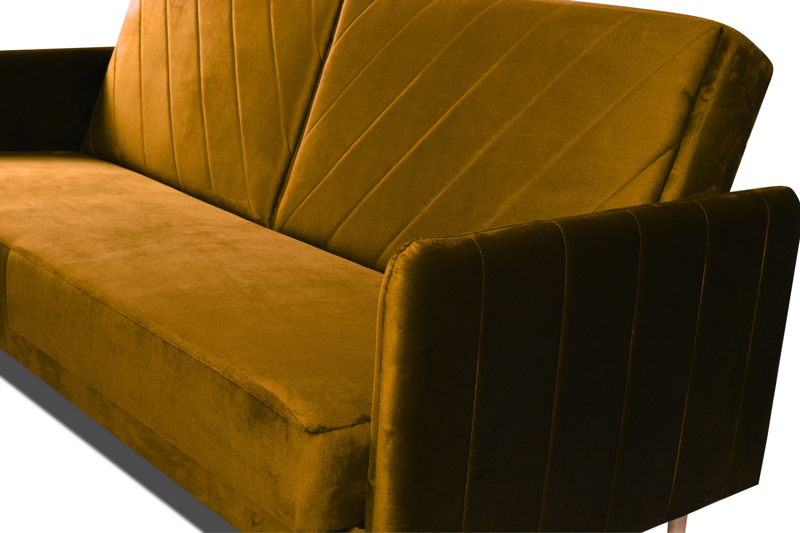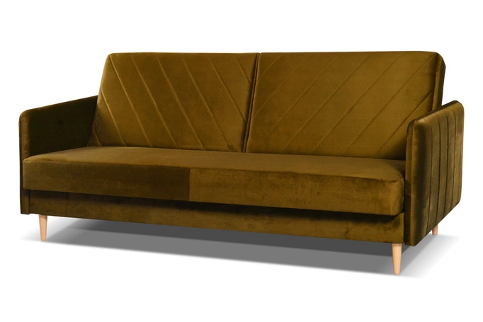 Dank der Schlaffunktion lässt sich die Sofa in wenigen Augenblicken zu einem bequemen Bett verwandeln, während der großzügige Bettkasten für Ordnung sorgt und Platz spart. Die schlanken Holzfüße verleihen dem Möbelstück Leichtigkeit, und das gesamte Design passt perfekt zu modernen, skandinavischen oder Loft-Innenräumen.
