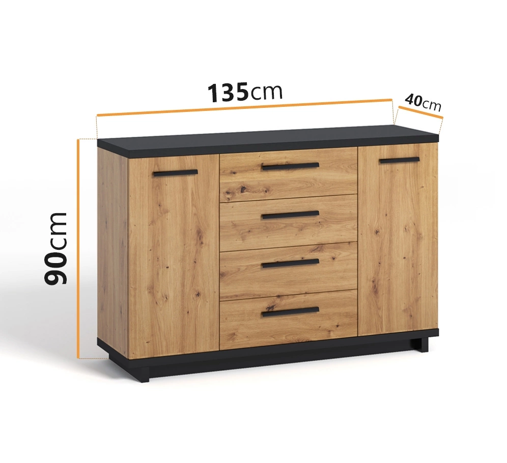 - Kommode Zonda K2D4SZ - Breite: 135 cm, Tiefe: 40 cm, Höhe: 90 cm