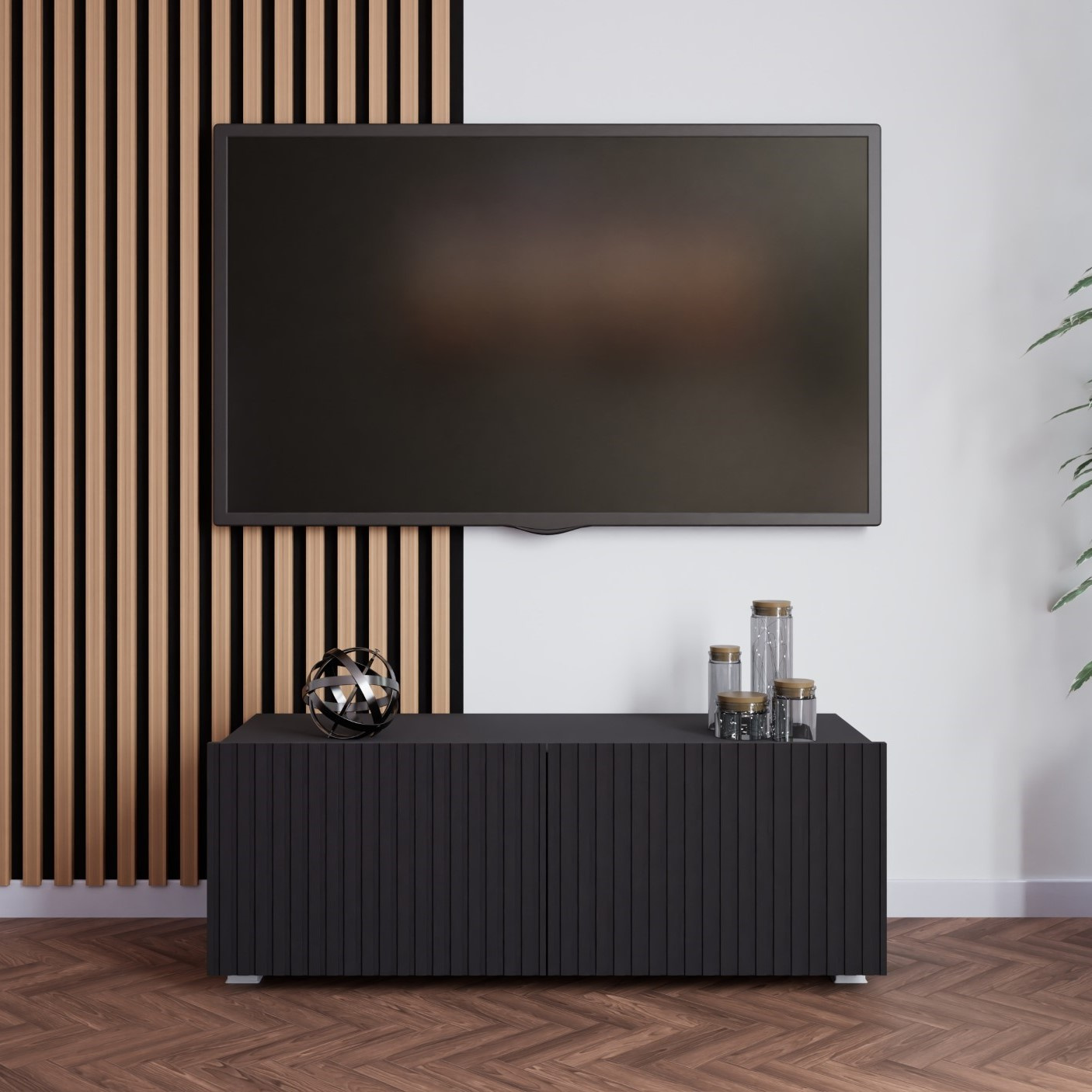 Schwarzer TV-Schrank Kolder 100 cm mit geriffelten Fronten
