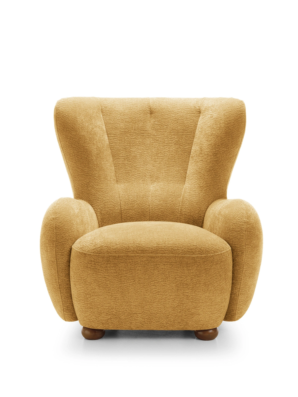Sessel FILO Ohrensessel Dress Me 08 Senfgelb Strukturstoff Holzkugeln