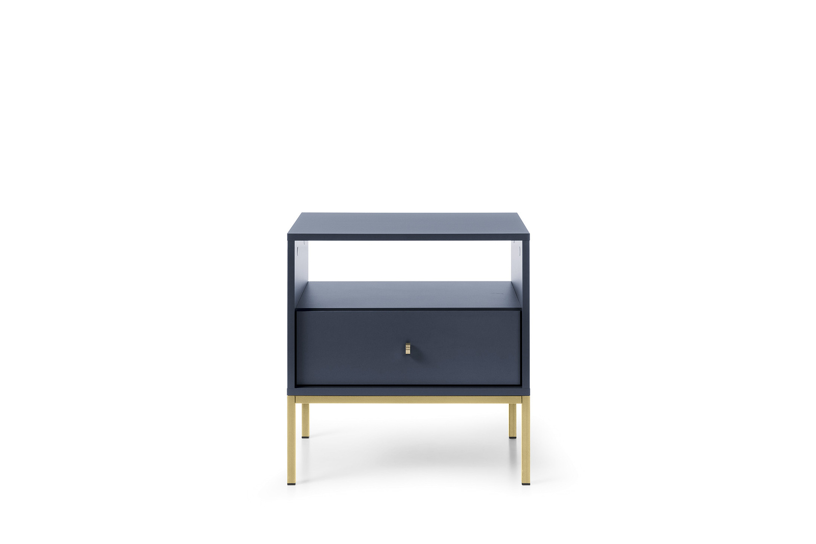 Stilvoller Nachttisch Bari in Marineblau mit goldenen Beinen