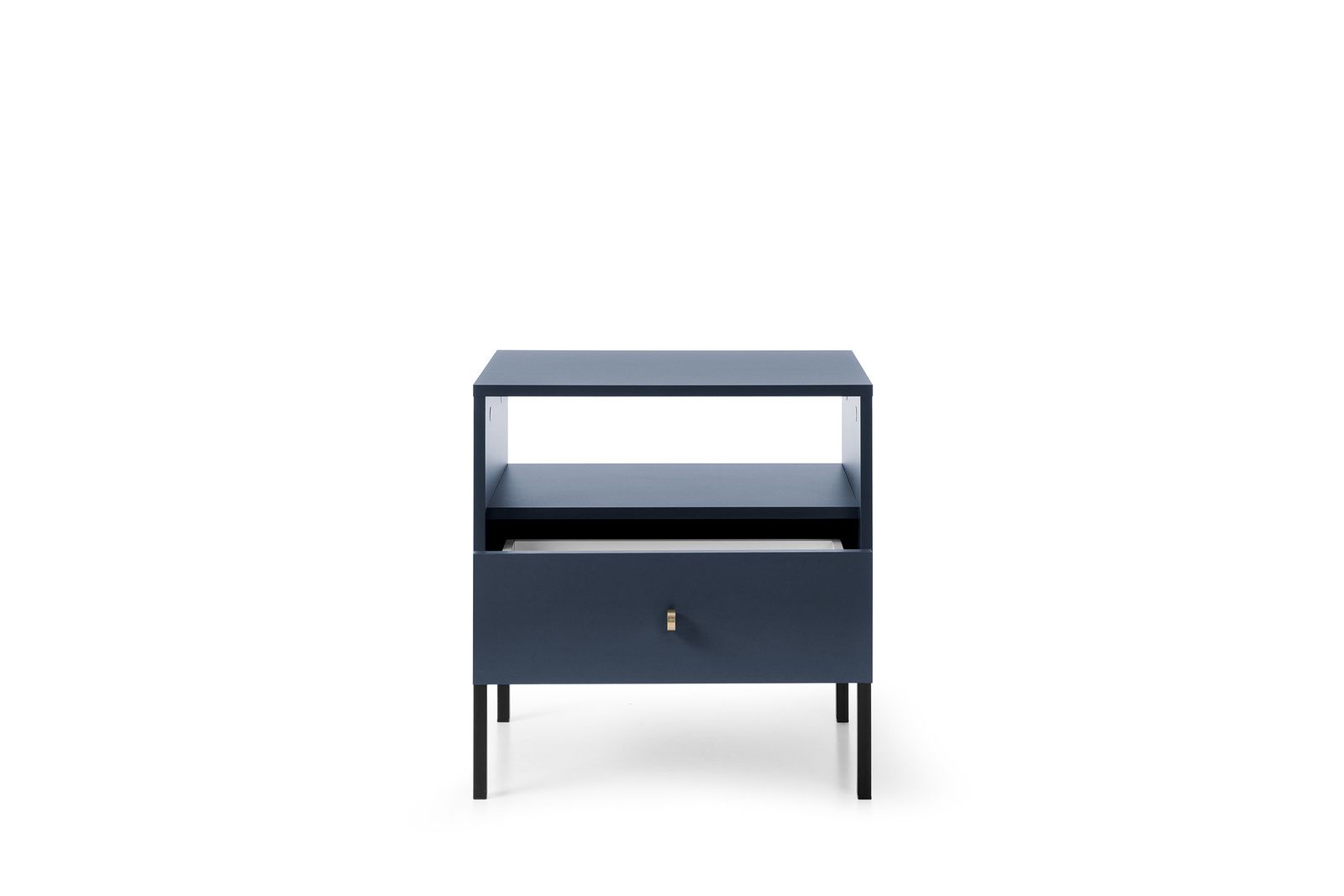 - Der Nachttisch Bari in tiefem Marineblau ist die perfekte Lösung, um Ihrem Schlafzimmer Eleganz und Funktionalität zu verleihen. Ausgestattet mit einer geräumigen Schublade, bietet dieser Nachttisch Platz für alle notwendigen Dinge, die Sie griffbereit ha