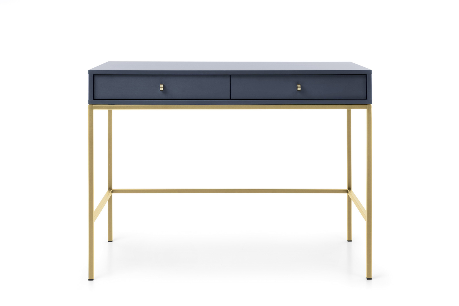 Stilvoller Schminktisch Bari mit zwei Schubladen in Marineblau + goldenen Füßen