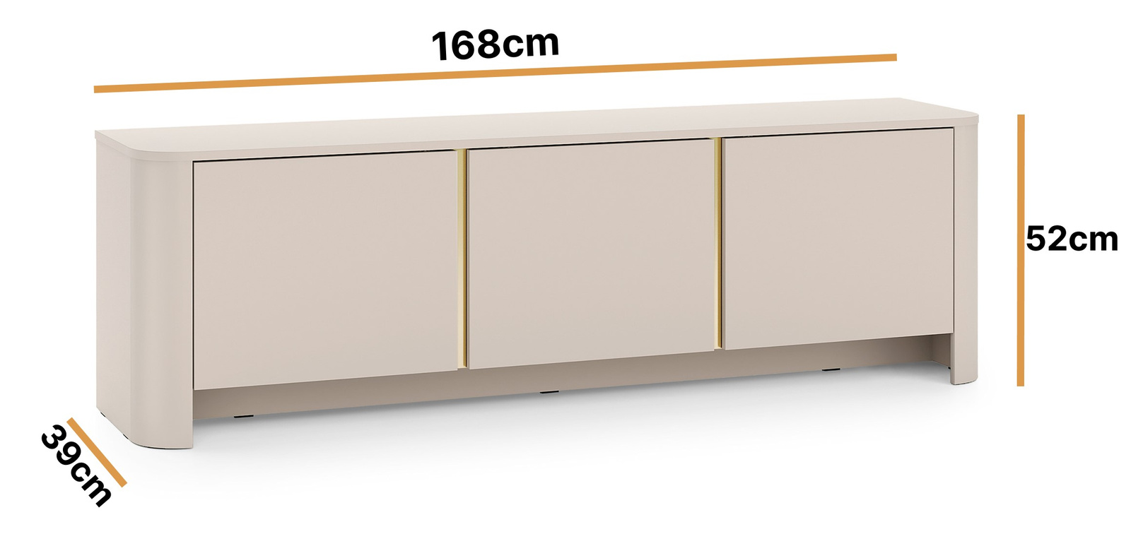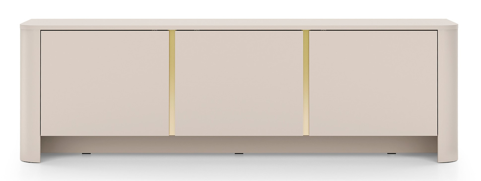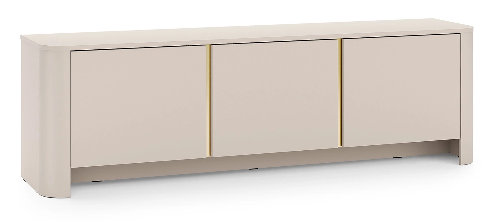 Der TV-Schrank Aura ist eine Kombination aus Eleganz und moderner Schlichtheit. Die abgerundeten Seiten verleihen dem Möbelstück Leichtigkeit, während der dezente, vertikale Akzent in Goldfarbe seinen einzigartigen Charakter unterstreicht. Die helle, neutrale Kaschmirfarbe passt perfekt zu eleganten und modernen Inneneinrichtungen.