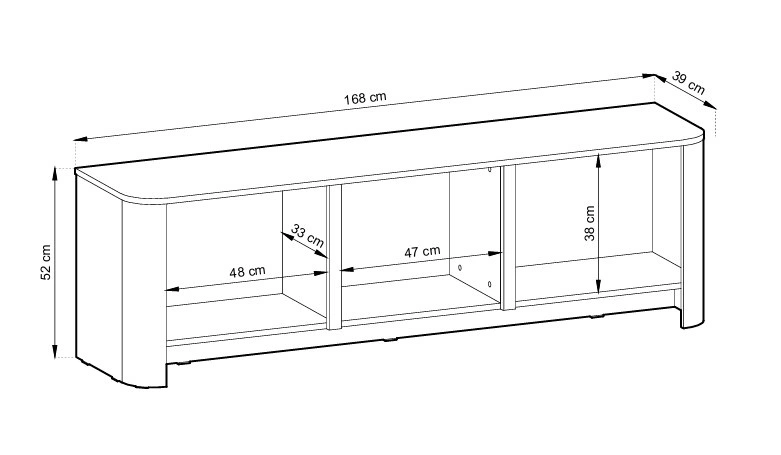 Die natürliche Maserung des Holzes und die sanft abgerundeten Seiten verleihen dem Möbelstück eine leichte und subtile Optik. Hinter den drei Türen verbergen sich praktische Regale, in denen Sie Ihre Unterhaltungselektronik, Dokumente oder andere Accessoires unterbringen können. Dank seiner neutralen Form und universellen Farbgebung eignet sich der Schrank Aura sowohl für moderne als auch für klassische Innenräume.
