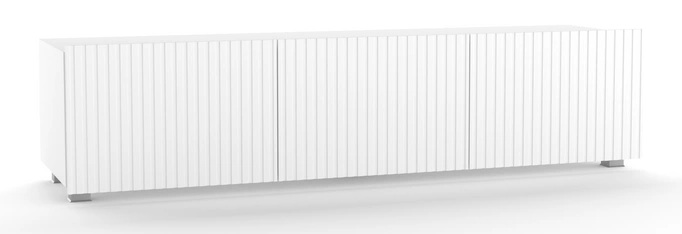 Der 150 cm breite TV-Schrank Kolder zeichnet sich durch schöne geriffelte Fronten und eine mattweiße Farbe aus, die ihm ein modernes und elegantes Aussehen verleihen. Die Fronten aus MDF sind langlebig und ästhetisch und garantieren eine lange Lebensdauer.