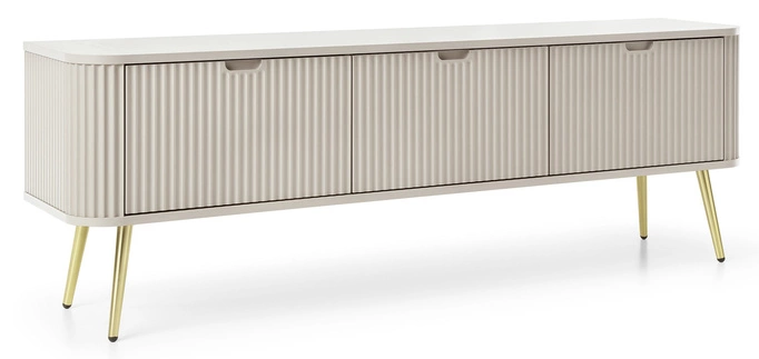 TV-Schrank Porto 168 cm in Kaschmirfarbe, dreitürig, mit geriffelten Fronten und goldenen Beinen