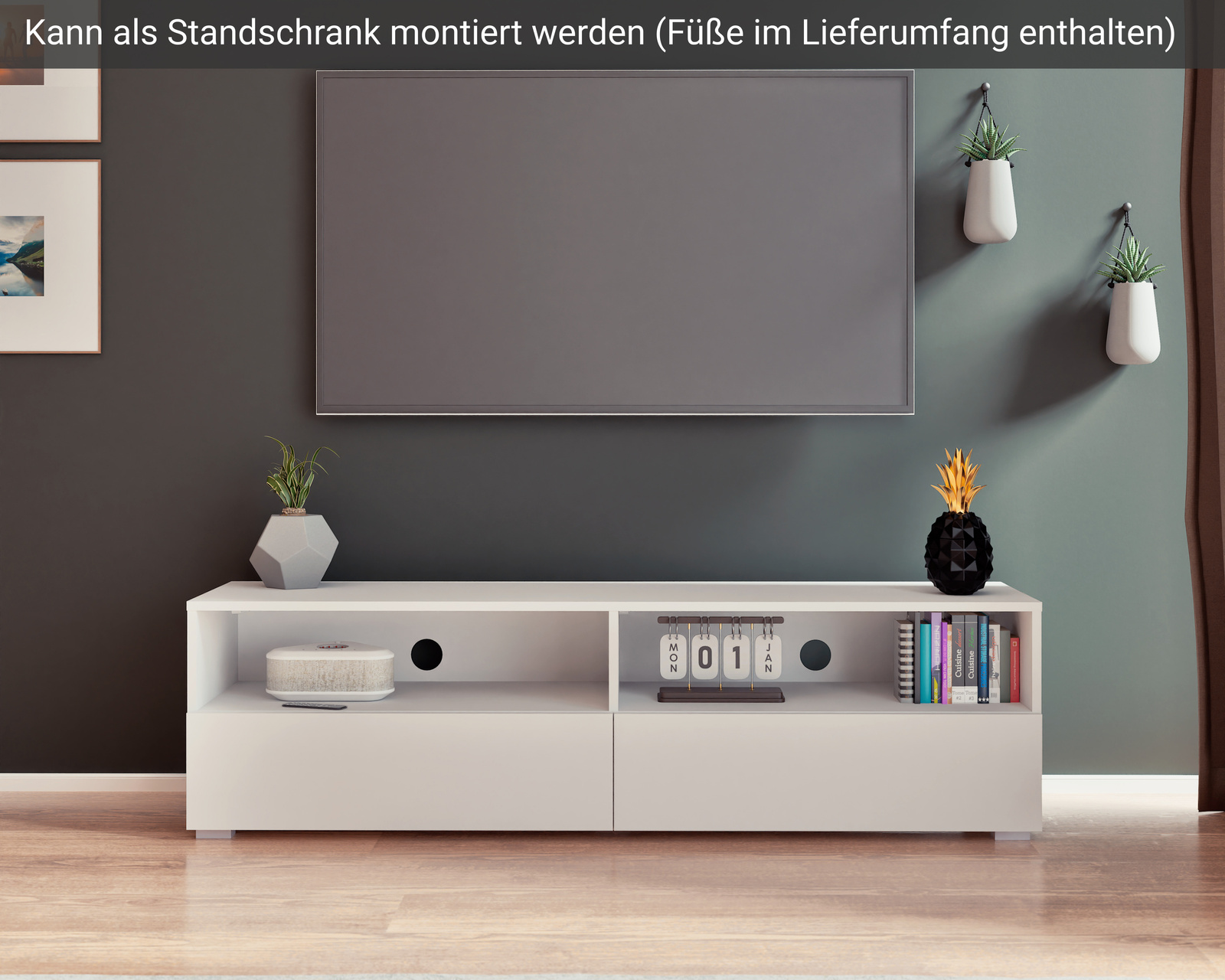 TV-Schrank Tebris 150 – mattweiß, moderne Form für geräumige Innenräume
