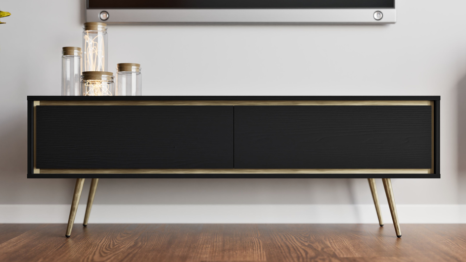 TV-Schrank Tori 150 cm mit Metallfüßen in Graphitschwarz