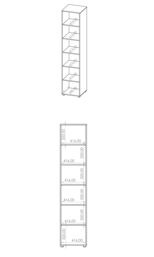 Ausgestattet mit sechs geräumigen Regalböden sorgt das Regal für eine perfekte Organisation von Büchern, Dekorationen, Ordnern oder Alltagsaccessoires. Dank seiner kompakten Breite passt es auch in enge Räume und bietet gleichzeitig viel Stauraum. Die solide Konstruktion garantiert Stabilität und Langlebigkeit, während die matte Oberfläche für Eleganz sorgt und die Reinigung erleichtert.