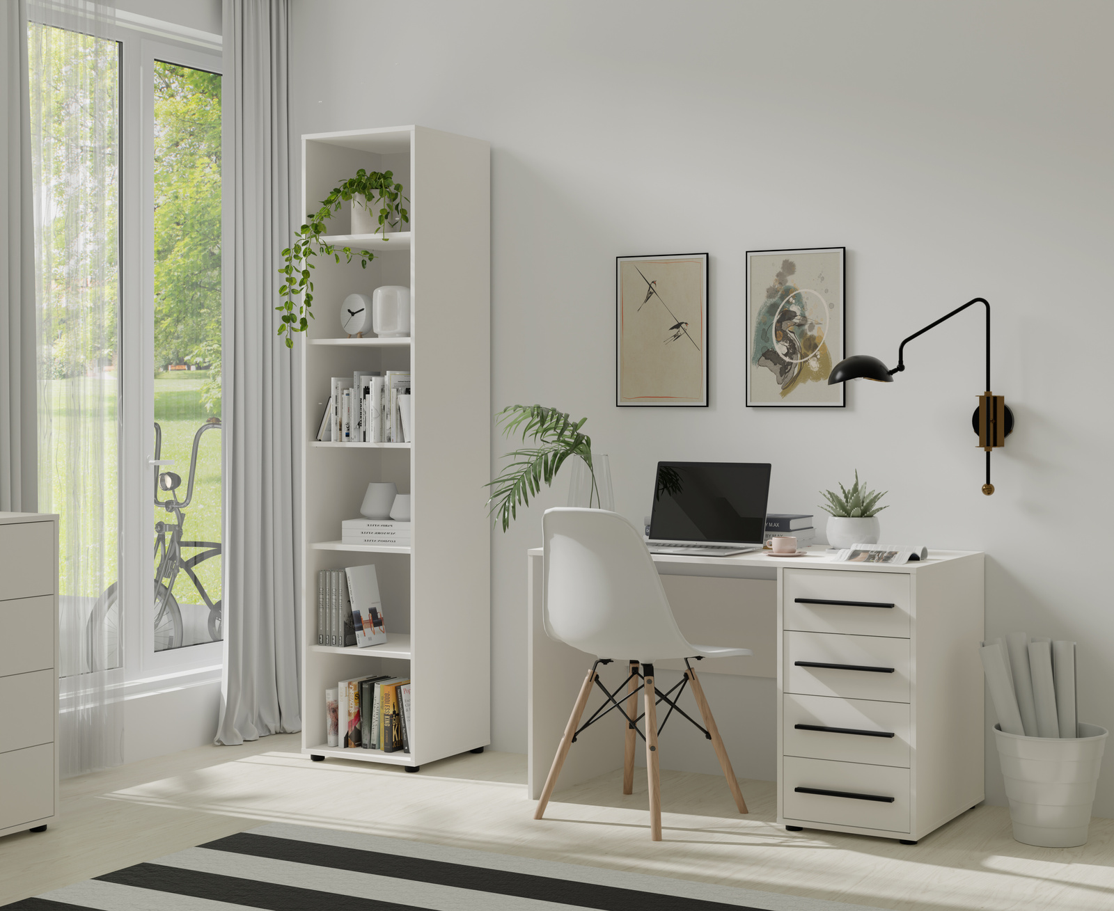 - Weißes Regal Modena mit 6 Fachböden. Minimalistisch, praktisch und elegant – ideal für Wohnzimmer, Büro und Jugendzimmer.