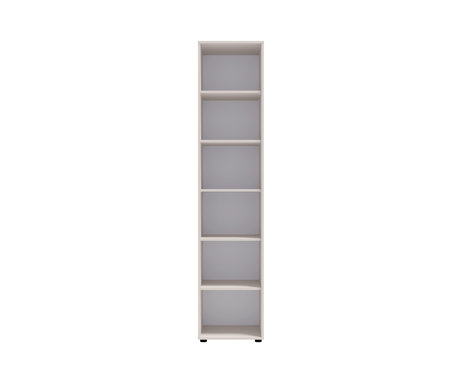Ausgestattet mit sechs geräumigen Regalböden bietet das Regal Platz für Bücher, Dekoartikel, Ordner oder Alltagsgegenstände. Dank seiner kompakten Breite passt es auch in schmale Räume und bietet gleichzeitig viel Stauraum. Die solide Konstruktion garantiert Stabilität und Langlebigkeit, während die matte Oberfläche für Eleganz sorgt und die Reinigung erleichtert.